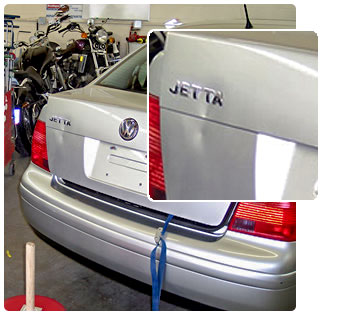 This Jetta presented a few challenges to the Dentique Technician. One of the dents was right on the trunk lid panel seam.